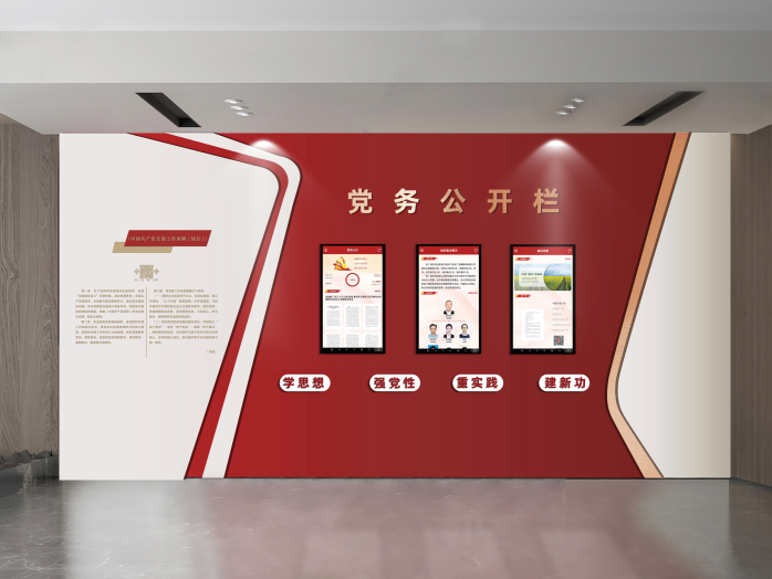 - 党务公开栏设置屏幕数量、尺寸、展示模块均可重新按需定制。